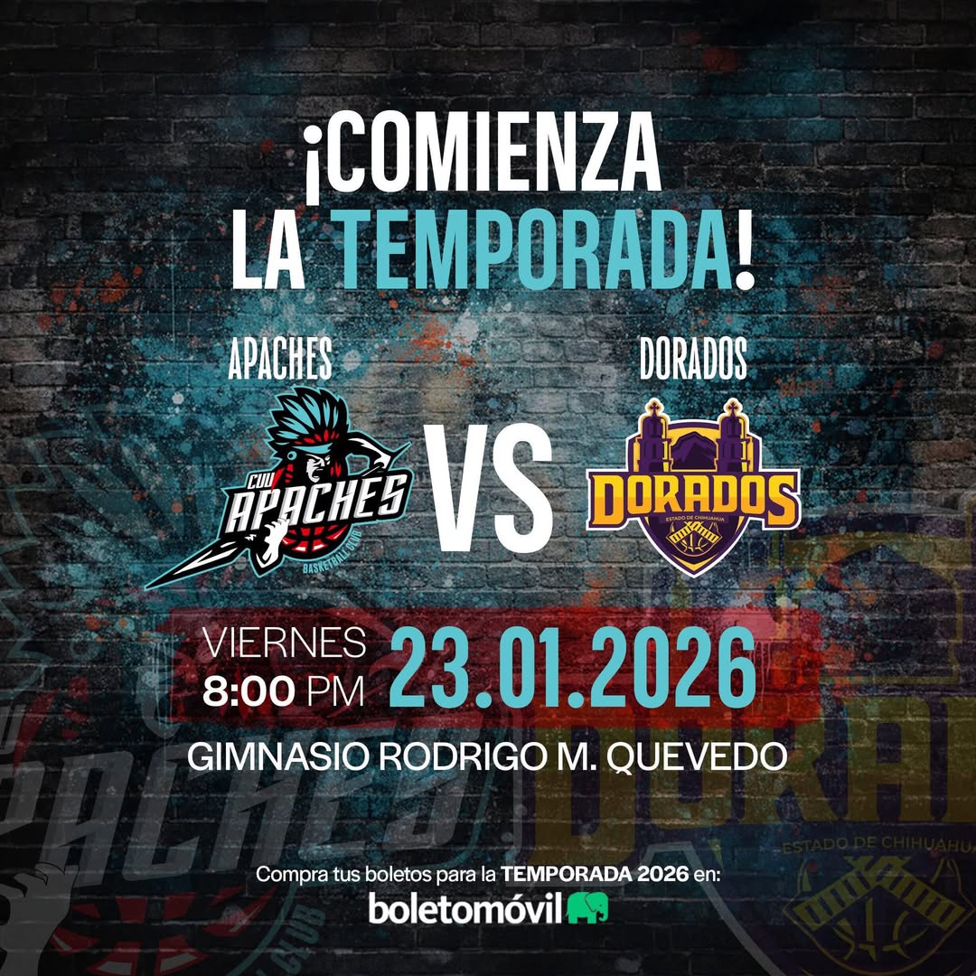 El próximo viernes 23 de enero, el equipo de los Apaches de Chihuahua hará su presentación en la Temporada 2026 de la Liga de Basquetbol Estatal (LBE), cuando reciban la visita de los Dorados, en un encuentro programado a las 20:00 horas en la duela del Gimnasio Rodrigo M. Quevedo.