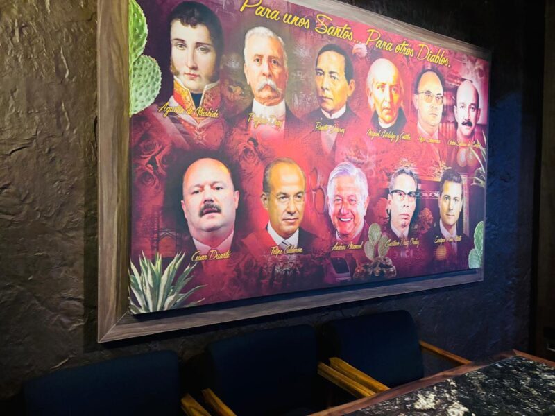 Sus cuadros retratan personajes históricos de México y de Chihuahua: figuras que algunos consideraron villanos o diablos, pero que fueron influyentes, guerreros, nacionalistas y protagonistas de su tiempo.