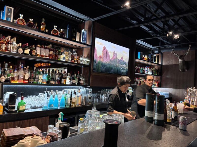 La barra acompaña con una propuesta sólida: mixología variada, bebidas únicas y opciones tradicionales. Hay de todo y para todos los gustos, siempre con insumos de calidad y ejecución precisa.