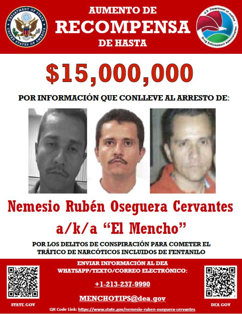 El gobierno estadounidense, a través del FBI y la DEA, ofrecía una recompensa de hasta 15 millones de dólares por localizar al líder criminal, mientras que el gobierno mexicano mantenía desde 2018 una recompensa de 30 millones de pesos.